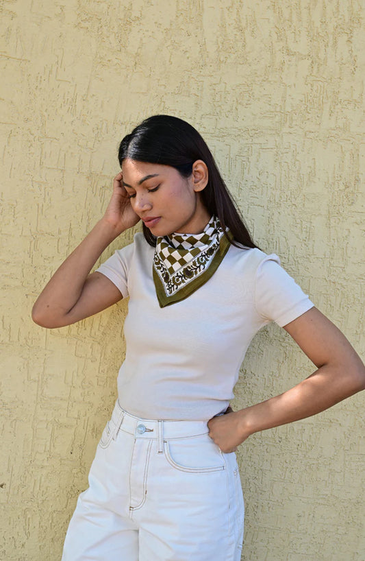 Petit Foulard Checks Bistre