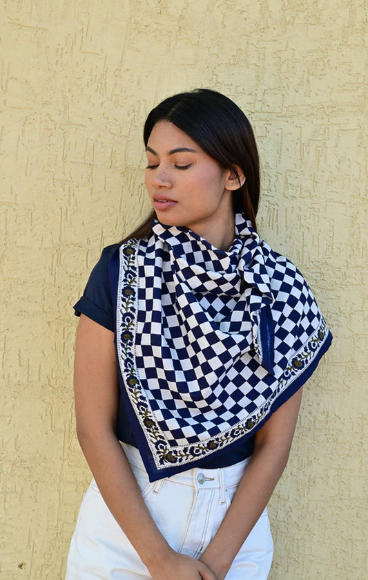 Petit Foulard Checks marine