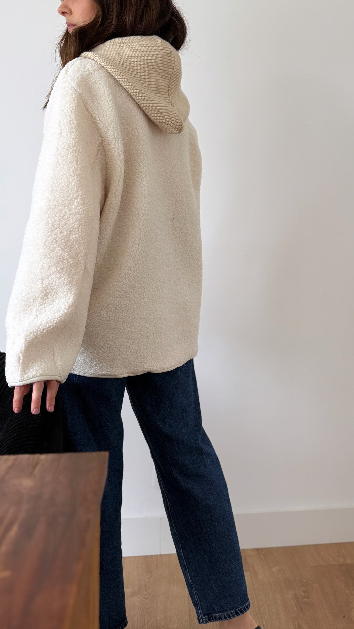 - Capuche en maille (qui s’enlève)